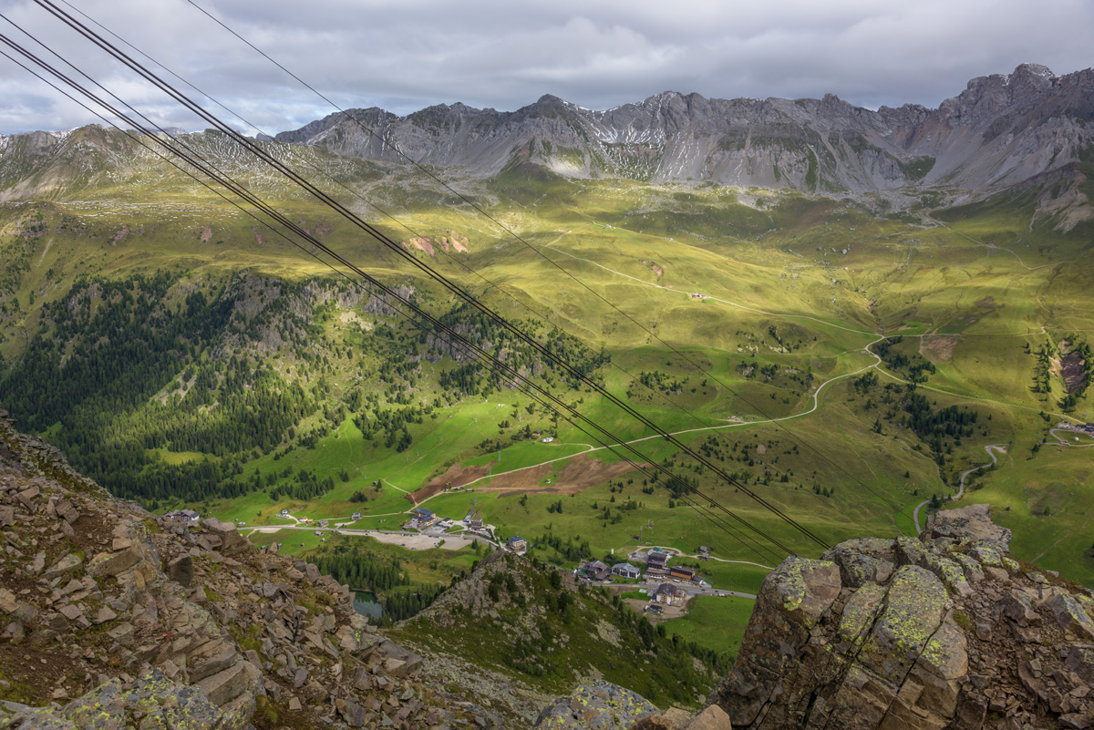 After spending the night in a hotel in Passo San Pelligrino, we lazily rode the Funivia Col Margherita with views back to Passo San Pelligrino and across.