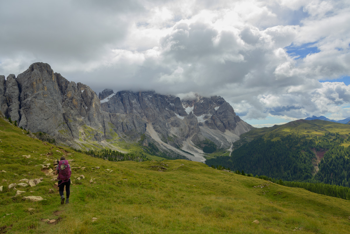 Pan from Passo San Pelligrini to the spiky mountains we will be passing through.