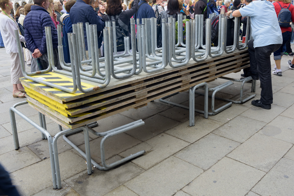 Boardwalks used when the Piazza is flooded. We saw lots of stacks of these stored walkways.