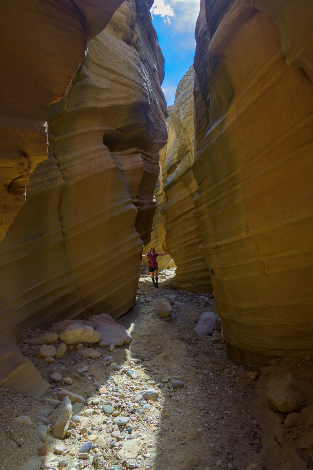 A little drop getting into this slot canyon. You can see that we had a cheater rope.